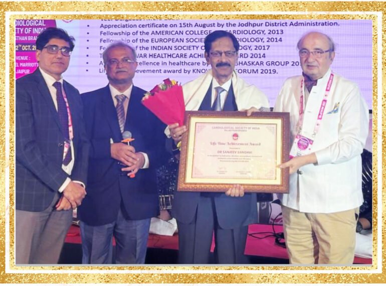 We are immensely proud to share that Dr. Sanjeev Sanghvi , renowned Cardiologist at Vasundhara Hospital , has been honored with the Lifetime Achievement Award at the Rajasthan State Cardiology Congress, Jaipur. This prestigious recognition celebrates his outstanding contribution, dedication, and excellence in the field of cardiology — saving countless lives and inspiring generations of healthcare professionals.